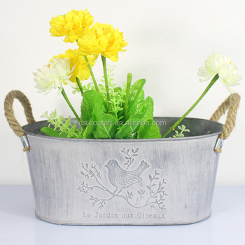 Maceta ovalada de hierro para jardín, maceta con mango de cuerda de cáñamo
