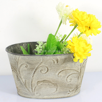 Maceta de hierro ovalada con patrón de corteza Artículo decorativo de jardín para uso en el piso